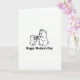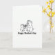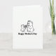 This card shows a monochrome scene of two round, animal-like characters outlined in black on a bright white background. A smaller, younger figure stands on the left and leans forward with an outstretched arm, offering a bouquet that feels like a quiet “I care about you” ❤️. On the right, a larger figure with a small bow on its head lifts its paws to its cheeks, as if caught in a sweet surprise by the gesture. The simple linework keeps the focus on their body language, including the gentle tilt of their heads toward each other that suggests closeness and trust. The bouquet is drawn with layered petals and leafy shapes, giving it texture even without color 🌼. Below the illustration, the words “Happy Mother’s Day” appear centered in thick black letters. The background remains empty and white, making the two characters and the bouquet stand out clearly. The bow sits near the top of the larger character’s head, and the bouquet is angled from left to right between them.