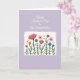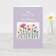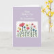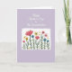 This greeting card features a soft lavender background that gives the scene a gentle, calm glow. Near the top, a flowing white cursive-style line of text sits centered with plenty of open space around it, like a quiet note meant for someone close ❤️. Beneath it, a white rectangular panel with a slightly uneven, hand-drawn-looking border creates a cozy window into a garden scene. Inside the panel, tall green stems rise upward, and the flowers lean and cluster as if they’re gathered together in friendly company. Large coral blooms open wide beside teal and sky-blue blossoms, their colors mingling like a tender exchange between close hearts. Small mustard-yellow star-shaped flowers dot the gaps, with tiny golden petal-like flecks scattered around like sunlit confetti 🌼. The lettering stays at the top in white, while the framed garden below is filled with coral, teal, sky blue, green, mustard yellow, and little touches of gold.
