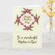 Designed with a soft cream background, this card centers on a diamond-shaped floral frame that feels like a gentle hug ❤️. The border is made of bright fuchsia flowers with sunny yellow centers, spaced evenly between slim green leaves and small deep-pink buds. The balanced arrangement gives the layout a calm, caring look, like a quiet moment shared between close family members. Inside the diamond, the main line “Happy Mother’s Day” sits in the upper center in flowing, connected lettering colored warm golden-brown. Just beneath it, a second line in the same golden-brown style reads “To a wonderful Mother in Law,” smaller and neatly aligned to keep the focus on the greeting. The petals and leaves show light shading that suggests soft texture without looking busy, and a tiny 🌼-like brightness comes through in the yellow flower centers. The floral border forms a continuous outline with blossoms at the corners and tapered leaves pointing inward toward the text.
