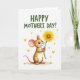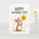 This design shows a cute, upright cartoon rodent centered on a white background, colored in warm tan and creamy white with soft shading. Its large dark eyes and faint pink blush, along with rosy inner ears, give it a tender, friendly look ❤️. The small pink paws gently hold a big sun-yellow flower with many thin petals, like it’s offering it to someone special. A sturdy green stem adds a natural touch, while tiny golden heart shapes float around the character, suggesting a sweet, affectionate moment. Beneath its feet, a light earthy wash with a few green strokes hints at simple ground without distracting from the main scene. Across the top, a hand-drawn message sits in medium-to-dark green lettering, spaced evenly above the character and easy to read 🌼. The yellow flower is round and full, with slender petals radiating outward like a sunny burst.