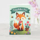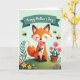 This design shows an orange-and-cream, fox-like character centered on a gently rolling green hill, eyes closed with a soft smile and pink cheeks as it lifts a bright pink daisy to its nose ❤️. Around it, small wildflowers in yellow, purple, and coral dot the grass, creating a spring setting that feels tender and welcoming. To the right, a terracotta flowerpot spills over with matching pink blooms, like a quiet gift left nearby by a friend. Above, three small striped insects drift across a pale teal sky, their looping paths adding a light, affectionate energy. A curved teal banner stretches along the top edge, carrying a short Mother’s Day message in white lettering. The lines are smooth and the colors stay mostly pastel, with gentle shading that keeps the scene soft and cozy 🌼. The banner sits high at the top while the flowerpot anchors the right side, and the pink daisy stands out against the green hill and teal sky. Tiny yellow and purple blossoms scatter near the character’s feet, with the terracotta pot tucked just to its right.