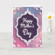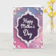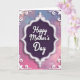 This greeting card features an ornate, layered frame in deep violet and soft lavender, centered like it’s gently floating over a dreamy wash of color. The background blends pale sky blue at the top into lilac and warm rosy pink near the bottom, like soft clouds drifting together in a quiet embrace ❤️. In the middle, the text “Happy Mother’s Day” sits centered inside the frame in flowing white lettering with a faint shadow that helps it stand out. The tender color transitions and gentle shading create a calm, affectionate atmosphere, like a warm hug shared between close family or friends. Each corner is decorated with delicate white curling flourishes that mirror the frame’s curving shapes, adding a touch of graceful detail 🌼. Subtle shadows behind the flourishes and frame give the design a lightly layered, cut-paper look without feeling heavy. The white corner flourishes are thin and symmetrical, with small curls and loops that sit against the blue-to-pink gradient backdrop.