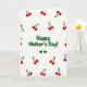 This card features the message “Happy Mother’s Day!” centered in rounded, deep green lettering on a bright white background. Around the words, a repeating pattern of small fruit pairs—two glossy red circles joined by looping green stems—drifts across the space like a gentle sprinkle. The roomy white setting keeps everything airy, letting the red and green colors stand close together the way loved ones do ❤️. The fruit drawings have a casual, drawn look that softens the design and adds a friendly, affectionate feel. Just below the main line of text, two small solid green hearts sit side by side, like a quiet shared glance between family members. The text stays in the middle while the fruit spreads outward, guiding your eye around and back again without feeling crowded 🌼. The green hearts appear directly beneath the centered greeting, with the red fruit pairs scattered evenly around them on the white field.