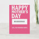 This card features a bright fuchsia background that feels affectionate and a little cheeky, like an inside joke shared with someone you adore ❤️. Centered near the top, large white serif letters read “HAPPY MOTHER’S DAY,” stretching across most of the upper area. Beneath that, a wide white rectangle sits in the middle like a password field, hinting at everyday closeness and trust. Inside the rectangle, a row of black asterisks suggests a secret being kept with a gentle grin rather than being revealed. Near the bottom, smaller white text reads “LOVE, YOUR PASSWORD KEEPER,” aligned centrally and spaced to feel tidy and intentional. The high contrast between the fuchsia, white shapes, and black marks keeps the layout crisp while the joke lands softly, like a fond nudge 🌼. The asterisks are evenly spaced in a single line within the white rectangle.