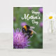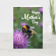 Designed with a close-up nature scene, this card features a fuzzy black-and-golden winged insect leaning into a spiky purple bloom in the lower-left area, as if drawn in close like an affectionate nuzzle ❤️. Its rounded body shows soft bands of fur, glossy eyes, and thin translucent wings folded neatly along its back. The flower bursts with lavender and fuchsia florets that radiate outward, giving the moment a gentle, almost romantic sense of closeness between visitor and bloom. Bristled legs clasp the petals with careful balance, suggesting a quiet exchange rather than hurried motion. Behind them, a softly blurred emerald green background with a faint violet cast creates depth and keeps the focus on the pair. In the upper-right corner, white lettering sits lightly over the green, leaving plenty of open space around the message. Subtle lighting brings out the contrast between the insect’s velvety texture and the flower’s fine spikes, with a small 🌼 accent near the floral cluster.