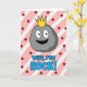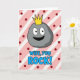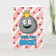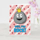 This greeting card features a cheerful, cartoon-style rock character in smooth gray shading, with big wide eyes, dark pupils, and a friendly grin that feels like a warm inside joke between close partners ❤️. A bright gold crown sits on top, giving the little rock a sweet, affectionate “you’re my royalty” kind of charm without needing any extra characters. Behind it, the background is filled with wide diagonal stripes that alternate soft pink and white, like a candy-shop wall. Deep maroon polka dots are sprinkled across the stripes, adding a flirty, party-like touch 🌼. Centered below the character, the text reads “WIFE, YOU ROCK!” in rounded sky-blue letters with a black outline. The wording sits near the lower middle of the design, leaving the crowned rock as the main focus above. The crown is a sharp golden shape positioned right at the top of the gray rock’s head, standing out against the pink-and-white striped backdrop.