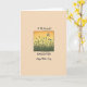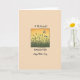 This card features a centered rectangular illustration that draws your eye right away, like a quiet little window into nature ❤️. Inside the frame, tall, slender grass shapes rise from a darker ground, their silhouettes leaning together in a way that feels gently companionable. Above them, the sky fades from glowing golden yellow near the top into a softer orange lower down, suggesting early morning or late evening calm. Three small white winged insects, outlined in black, drift across the open air, adding a light, floating sense of closeness and shared space. The border around the scene looks slightly uneven and rustic, giving the picture a relaxed, intimate feel rather than something overly formal. On the beige background, a large uppercase word naming a family role sits along the bottom in a darker ink, while smaller message lines appear above and below the framed artwork in a contrasting, flowing letter style 🌼. The text is arranged to guide you from the top line down through the picture and then to the big word at the base. The overall layout is simple: a smooth beige field, the centered framed landscape, and dark lettering surrounding it.
