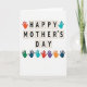 This Mother's Day card features the message “Happy Mother’s Day” in black letters, with each letter sitting on its own warm off‑white tile with a soft shadow. The tiles are arranged across three lines and centered, giving the greeting a tidy, gallery-like layout. Near the top, two cutout-style handprints—one orange and one teal—reach inward as if framing the first words with a gentle, affectionate gesture ❤️. Beneath the text, a row of eight more hand silhouettes stretches across the card like a supportive group hug, mixing emerald green, deep indigo, bright aqua, fiery red, soft lavender, and sunny orange. Subtle drop shadows under each handprint add depth, making them look lightly pressed onto the surface, as if placed with care. The background stays plain white, letting the warm tiles and colorful hands stand out without distraction 🌼. The bottom row includes a bright aqua hand beside a fiery red one, both edged with faint shadows on the white background.