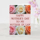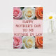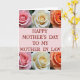 This greeting card features a neat, symmetrical layout where six close-up flowers surround a wide center panel, creating a gentle frame that feels affectionate and welcoming ❤️. In each row, three blooms sit side by side: a blush-pink flower with petals curling inward, a creamy white rose with a buttery yellow center, and a warm peach-orange blossom with a darker, detailed core. The petal textures look velvety and softly layered, like they’re leaning toward one another in a quiet, friendly closeness. A horizontal band across the middle is tinted a pale rose, giving the design a calm, tender backdrop. Centered on that band, the message “HAPPY MOTHER’S DAY TO MY MOTHER IN LAW” appears in deep crimson, set in a classic serif style that stands out clearly. The lighting is diffused and gentle, keeping shadows minimal and letting the soft color shifts in the petals show through 🌼. The outer flowers mirror each other in placement, and the peach-orange blooms anchor the corners with their darker centers and warm tones.