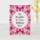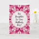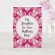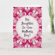 Designed with a softly glowing circular center, this card sets a gentle stage for a loving message that feels like a close hug ❤️. The main text, “For Daughter In-Law Mother’s Day!”, sits centered inside the pale circle, with the lettering in a darker pink that stands out clearly against the light background. Around it, a ring of petal-like abstract shapes radiates outward, like a bouquet caught mid-bloom, suggesting the kind of warm closeness shared between family and friends. The surrounding forms swirl in layered pinks and fuchsias with small touches of white and blush, creating a lively, symmetrical burst that keeps drawing your eyes back to the words. The overall look leans soft and romantic, with the curved shapes and gentle glow giving the message a tender, affectionate tone 🌼. Light appears evenly spread across the design, making the central circle look luminous while the border details seem slightly shimmery. The outer edge is filled with intricate, flower-inspired curls and crystalline petals arranged in a radial pattern of deep pink, blush, and white.