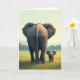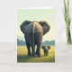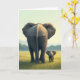 Designed with a gentle scene of two large, gray pachyderms walking away across a sunlit field, the adult fills the left side while a smaller youngster follows just to the right. The adult’s broad back and wide ears show deep folds and creases, and the little one’s smoother shape looks tucked close as if seeking comfort ❤️. Warm, low light suggests early morning or late afternoon, brushing their skin with soft highlights and laying faint shadows into the grass. The setting stretches into a quiet plain of golden-green blades, with a hazy horizon where tiny tree shapes and low hills sit in the distance. Their closeness reads like affectionate guidance, with the youngster leaning slightly inward as they move together. Near the top, a short greeting in light lettering sits against the pale sky, with a smaller line beneath it in a darker tone 🌼. The background sky fades from a soft yellow-green near the horizon to a lighter wash above, framing the pair as they walk.