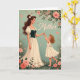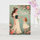 Designed with a tender garden moment, the artwork shows a graceful woman and a cheerful small child sharing an affectionate, trusting exchange ❤️. The woman has long brown hair flowing down her back, dotted with tiny white blossoms, and she wears a full cream skirt with a fitted deep green bodice detailed with fine lacing. She looks down with a calm, caring expression while the child looks up with bright eagerness, arms reaching as if asking for a guiding hand. The child has golden curls, a simple white dress with a large bow at the back, and bare feet that make the pose feel light and dance-like. Around them, soft roses and small flowers cluster across the scene, adding a gentle, romantic touch without stealing focus from their connection 🌼. Near the top, the word “Mother” appears in flowing lettering in a darker tone that stands out against the muted teal-green background. Small pink hearts are scattered around the figures, and the floral details frame them like a cozy garden border.