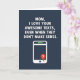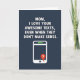 This card features a deep navy-blue background with big white sans-serif text across the top that reads, “MOM, I LOVE YOUR AWESOME TEXTS, EVEN WHEN THEY DON'T MAKE SENSE,” setting a teasing, affectionate tone ❤️. The letters are bright white with a faint raised look that makes them stand out against the dark field. Centered below the message sits a simple white outline of a smartphone, like a quiet stage for the joke. Near the top edge of the phone are small green status marks that suggest it’s connected and active. A single dark circular home button anchors the bottom of the device, keeping the layout balanced and easy to read. From the lower left side of the phone, a red speech bubble pops out like an incoming reply, adding a friendly, slightly flirty wink to the moment 🌼. Inside that bubble, a crisp white question mark is shown.