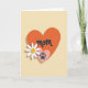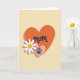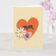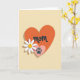 This design shows a large orange heart tilted slightly, creating a gentle sense of motion and closeness. Across the upper curve of the heart, the word “mom” appears in dark, flowing lettering that feels like a soft embrace ❤️. On the left side, a white daisy-like flower with a sunny yellow center overlaps the heart, adding a sweet, friendly touch 🌼. In the lower right area of the big heart, a smaller pale pink heart sits tucked in, like a quiet secret shared between loved ones. Inside that small heart, a dark paw print hints at companionship and the kind of affection that includes a cherished pet. Subtle shadows under the layered shapes give the elements a slightly raised, paper-cut look against the background. The backdrop is a creamy yellow field that keeps the focus on the orange heart, the flower, and the nested pink heart with its paw print.