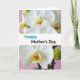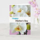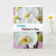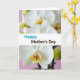 This card features a close-up view of delicate white orchid blossoms set against a softly diffused pink background, creating a gentle, affectionate atmosphere ❤️. Two open flowers take center stage, their petals detailed with faint texture that suggests softness and care, like a quiet exchange between loved ones. In each bloom, the intricate center blends golden yellow with warm brown tones, drawing the eye inward with a tender, intimate focus. A horizontal white banner runs across the middle of the design, cutting through the florals without hiding their elegance. Centered on the banner, “Happy Mother’s Day” appears in modern lettering, with “Happy” in teal and “Mother’s Day” in deep brown. Subtle green buds and stems peek around the blossoms, adding a fresh, nurturing touch 🌼. The background falls into a soft blur, and the orchids’ golden-and-brown centers remain crisp beneath the midline white banner.