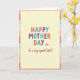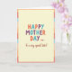 Designed with a soft, creamy yellow center panel, this greeting card puts the message front and center with “HAPPY MOTHER DAY.... To a very special Sister!” as the main focus. “HAPPY MOTHER DAY” sits prominently near the top in rounded, friendly letters, with different words and letters colored in pastel orange, teal, and purple for a lighthearted, affectionate feel ❤️. Just below it, “To a very special Sister!” appears in a flowing maroon cursive style, like a gentle note meant for someone close. An irregular, torn-edge-style border surrounds the central text, adding a cozy, intimate touch, as if the message were carefully saved and shared between family. Around that border, the background shifts to soft vertical stripes in muted blush, sky blue, and warm peach, creating a calm setting that still feels celebratory 🌼. The contrast between the multicolored headline and the maroon dedication guides your eye from the cheerful greeting down to the more tender line for a sister. The outer striped frame stays subtle and evenly spaced, with the pastel bands running straight up and down behind the central panel.
