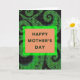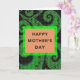 Designed with a peach-colored rectangle at the center, this card draws your eye to a bright lime-green border that glows against the dark background. Inside the frame, the words “HAPPY MOTHER’S DAY” sit neatly in deep forest green, centered and easy to read ❤️. Around the message, curling plant-like swirls in several shades of green sweep outward, with small touches of light blue tucked between the curves. The pattern feels like tiny connected tiles, giving the surface a textured, digital-fabric look that invites a closer glance. The contrast between the straight-edged frame and the flowing background creates a gentle sense of closeness, like a steady embrace surrounded by lively movement 🌼. Behind everything, the near-black field is dotted with a fine grid that subtly peeks through the green coils. The lime outline remains crisp and rectangular, enclosing the forest-green lettering on the peach panel.