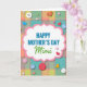 This card features a scalloped white message panel centered on the front, outlined by a soft pink border that feels gently framed with care. Inside the panel, “HAPPY MOTHER’S DAY” sits prominently in friendly blue lettering, with “Mimi” placed just below in flowing green letters for a tender, close-to-home touch ❤️. Behind the panel, a plaid background blends muted teal, warm peach, soft yellow, and sage green, like a cozy fabric laid out for a special occasion. Scattered across the plaid are small heart shapes in red, pink, blue, and yellow, each with slight shading that makes them look lightly lifted from the surface. Mixed in with the hearts are round button-like accents in white, red, pink, and pale blue, some showing four small holes while others have stitched-style cross details that add a sweet, affectionate craft feel 🌼. One red heart includes a small “1,” tucked in as a quiet little marker among the decorations. The overall layout keeps the text neatly centered while the hearts and button details orbit around it like little reminders of closeness. The soft pink frame and multicolor plaid sit behind the white panel, with the blue headline and green name standing out clearly in the middle.