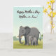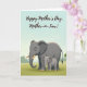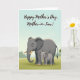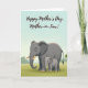 This design shows a gentle scene of two elephants standing close together on green grass beneath a calm, pale-blue sky, with a quiet, affectionate mood ❤️. A large charcoal-gray adult elephant fills the lower center, its softly curved cream tusks and textured skin shaded to look tender rather than imposing. Tucked snugly at the adult’s right side is a smaller youngster, mirroring the stance as if seeking comfort, their closeness suggesting a trusting bond. The adult’s big eyes face forward with a calm, caring look, while the youngster leans in as though enjoying the safety of being near. In the distance, the bright green foreground fades into a simplified tree line, giving the setting an open, peaceful feel 🌼. Across the upper area, the message “Happy Mother’s Day, Mother-in-Law!” is written in flowing black lettering that stands out clearly against the light sky. The text sits above the elephants with plenty of open space around it, keeping the focus on the pair and the soft landscape colors. A thin band of darker green marks the horizon just below the lettering.