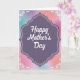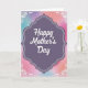 Designed with a deep purple, ornate plaque centered on the front, this card draws your eye with a smooth, wavy shape outlined by a crisp double border in white. A soft shadow beneath the plaque gives it a gentle floating effect, adding depth without feeling heavy. Across the middle of the purple area, white lettering flows in an elegant cursive style, like a quiet note shared between close hearts ❤️. Behind it all, a pastel gradient background drifts from rosy pink and warm apricot into calm sky blue and light lavender, like early morning light over a garden 🌼. In each corner, delicate white flourishes curl outward with scroll-like lines and small botanical touches, framing the center like a tender embrace. The overall layout feels romantic and friendly through its soft color transitions and graceful framing, keeping attention on the central message. The white corner filigree and the double white outline stand out sharply against the purple plaque and the dreamy pastel backdrop. End with a friendly line about sharing Mother's Day sentiments.