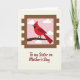 This card shows a stamp-edged frame centered on a light, creamy background, setting a cozy, affectionate tone ❤️. Inside the frame, a bright red bird with a pointed crest perches on a dark brown branch that stretches across the lower part of the scene, as if pausing to share a quiet moment with someone nearby. A warm orange beak and small black markings around the eye add contrast, while darker red diagonal lines on the tail feathers give the plumage a soft sense of texture. Behind the bird, a pale pink sky feels gentle and dreamy, with a few rounded white clouds drifting like sweet little daydreams 🌼. Below the picture, a short message sits centered near the bottom, written in deep red lettering that echoes the bird’s color. The text is placed outside the stamp-like frame, leaving the illustration uncluttered and easy to take in at a glance. The overall layout uses simple shapes and smooth outlines, with the red bird standing out against the pastel sky and creamy border. The inner scene shows the red bird facing slightly to the side on the branch, with white clouds scattered across the pink background.