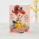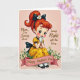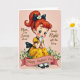 This card features a retro-style cartoon woman centered on a blush pink background with softly brushed edges, giving the scene a gentle, affectionate glow ❤️. She has fiery red hair in a high ponytail, tied with a large black bow and topped with a small white flower, and her big teal eyes and rosy cheeks add a shy, apologetic look. Her white-gloved hands are clasped close together, as if she’s offering a sweet “make up?” gesture to someone she cares about. She wears a sunny yellow dress with black polka dots and puffed sleeves, cinched at the waist with another black bow, which adds a flirty, friendly charm. Along the lower portion, a small cluster of white flowers with green stems frames a curved banner that stretches across the bottom. The message is written on the banner in dark lettering, with the key phrase “Right all the time” standing out as the cheeky punchline 🌼. The background stays softly pink behind her while the white flowers and banner create a bright border near the base of the design. The black bow, white bloom, and teal eyes pop against the pink backdrop, and the curved banner sits just above the flower cluster at the bottom.