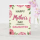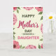 This greeting card features a soft cream background with a floral border that wraps around the message like a gentle embrace ❤️. At the center, the word “HAPPY” sits near the top in dark, simple lettering, with “DAY” placed below in the same style to keep the layout grounded. Between them, “Mother’s” appears in flowing cursive-style lettering in a rich pink-purple tone, adding a tender, affectionate touch. The word “WONDERFUL” is smaller, muted, and set between hyphens as a quiet connector line, and “DAUGHTER” appears beneath in the same pink-purple color, giving the design a close, family-focused feel 🌼. Around the edges, roses in different stages of bloom show soft blush petals that deepen toward rosy centers, suggesting warmth and closeness. Olive and emerald leaves fill in the spaces, creating a garden-like frame that feels calm and welcoming. The border shows pink roses at the corners with scattered green foliage curving along all four sides.