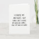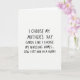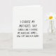 This card features a stark white background with centrally aligned, hand-drawn-style black lettering that looks like a quick note written with a marker. The message is arranged in several short lines, stacked neatly in the middle so your eye reads straight down without distraction. Each letter stands upright but varies slightly in width and height, giving it a human, off-the-cuff feel that can read like a teasing nudge between close friends ❤️. The humor comes through in the deadpan contrast between choosing a celebratory greeting and arranging long-term care for an older relative, like two awkward topics sharing the same breath. That contrast creates a slightly mischievous, intimate tone, as if the writer is sharing an inside joke while still keeping a straight face 🌼. The final line lands as the punchline, set in the same dark ink and placed just below the lines above it so it feels like a quiet reveal. There are no characters or scenery—only black text on white space, with the words sitting squarely at the center of the front.