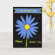 This design shows a large blue flower centered on a deep black background, creating a strong contrast that feels like a quiet spotlight on someone you adore ❤️. Long, narrow petals spread outward in cornflower blue with soft shading, and each edge is traced with a slightly darker blue-violet line for definition. The round center is a glowing yellow sphere with a glossy highlight, like a small pearl catching the light. A slim bright-green stem drops straight down, keeping the layout simple and focused. Near the top, a curved banner in matching blue sits above the bloom, outlined in yellow, and it holds a short affectionate line written in golden cursive-style lettering. Along the bottom, a second line of golden cursive-style text stretches across the width, reading like a celebratory note placed close to the stem’s base 🌼. The black background stays empty and smooth, making the blues, yellows, and greens stand out sharply. The banner’s yellow outline and the flower’s yellow center echo each other, while the petals radiate evenly from the middle like a neat starburst.