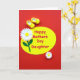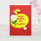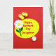 Designed with a rich crimson, textured background, the card centers on a large lemon-yellow oval set at a slight diagonal. Across the oval, the message “Happy Mother’s Day Daughter” appears in bright fuchsia lettering, stretching through the middle so it’s the first thing you notice ❤️. Just above the words, two small sunny-yellow slipper-like shoes sit side by side, their gentle curves hinting at a sweet, close bond like a shared moment between mother and daughter. On the left, a larger white flower with a golden center and a deep green stem leans inward, as if drawn toward the message. Near the lower right, a smaller white flower echoes the first, adding a soft touch of balance 🌼. The strong contrast between the glowing yellow and the deep red makes the design feel lively while still tender in its details. The background shows a ruby-red pattern with visible texture, while the oval and flowers look smooth and graphic against it.