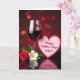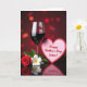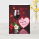 This card features a cozy still-life scene lit with a warm, romantic glow, like a quiet toast shared between close family. In the foreground, a slender wine glass holds a deep crimson drink, and its clear bowl catches soft highlights that feel gentle and affectionate ❤️. Just to the right sits a heart-shaped card in light pink with a red border, angled as if it was just set down with care. Across the center of the heart, the message “Happy Mother’s Day Sister!” appears in red lettering, easy to spot against the pale background. At the base of the glass rests a red rose with velvety petals beside a small white, star-like flower with a yellow center 🌼. Everything lies on a dark, glossy surface that reflects the glass, blooms, and card with a slightly rippled look. Behind them, the background fades into soft circular lights in red and orange tones.