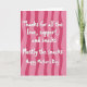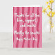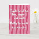This greeting card features centered white lettering that reads, “Thanks for all the love, support, and snacks Mostly the snacks Happy Mother’s Day,” with the lines stacked so the joke lands right in the middle ❤️. The letters have a soft shadow that helps the message stand out without looking heavy. Behind the text, the background is filled with vertical wavy stripes that feel like they’re gently swaying side to side, like a cozy hug. The stripes alternate between deep rose pink and a lighter blush pink, creating a sweet, romantic warmth that still feels friendly and relaxed 🌼. “Mostly the snacks” appears as its own line in the center, drawing the eye and adding a teasing, affectionate tone. “Happy Mother’s Day” sits at the bottom in the same white lettering, anchoring the design and keeping the layout balanced. The overall scene is simple and cheerful, with no characters—just a lively pattern and a message that feels like a grin shared across the kitchen table. The wavy pink stripes run from top to bottom in alternating dark and light tones behind the centered white text.