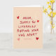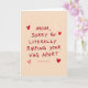 This card features a centered, handwritten-style message in deep red on a smooth light peach background, giving it a cheeky yet affectionate look. The letters have small uneven edges like marker strokes, which makes the words feel like they came straight from someone’s heart ❤️. The main phrase sits in the middle of the front, with the strongest red used for the key words so your eye lands there first. Around the text, four small hearts in mixed reds and soft pinks hover like little signals of closeness and flirtation. A few short white dash marks are scattered nearby, adding a light, teasing rhythm to the space without stealing attention. Beneath part of the wording, a thin pink underline sweeps across, like a gentle emphasis meant for someone special. The overall layout stays simple and open, letting the humor and warmth sit side by side in the same frame 🌼. The peach backdrop remains flat and even, with the red lettering, pink underline, and heart doodles clearly standing out at the center.
