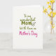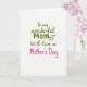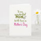 Designed with a soft white background and lots of open space, this card keeps the focus on a loving message that feels calm and close ❤️. Near the top, the words “To my wonderful” appear in an olive-green tone, centered and spaced to feel gentle and welcoming. The word “Mom” sits larger and rounder beneath it in the same olive-green, giving it a strong, affectionate presence like a warm hug in lettering. Just below, “Mother’s Day” stands out in bright fuchsia, centered and more flowing in style, adding a celebratory spark without crowding the page 🌼. Lower down, “With love on” returns to olive green, keeping the color rhythm consistent and soothing. The stacked layout guides your eye downward in an easy, tender progression, like a quiet conversation from start to finish. A small cluster of uneven olive-green dots sits near the main word, like light confetti sprinkled beside the text.