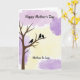 Designed with a gentle, romantic calm, this card shows a warm brown tree with lightly textured bark stretching in from the left, its bare branches reaching across a soft sky. Three small bird silhouettes sit on the branches in dark tones, with one perched a little apart while two lean close together as if sharing a quiet, affectionate moment ❤️. The background is a hazy blend of pale lavender and buttery yellow, like early morning light filtering through thin clouds. Near the top, the words “Happy Mother’s Day” are placed prominently in dark lettering that stands out against the light wash. Near the bottom, “Mother In Law” appears in matching dark text, centered and easy to read. The overall layout feels airy and balanced, with plenty of open space around the tree and birds, letting the closeness between the pair feel like a tender nod to family and friendship 🌼. Soft cloud-like patches of lavender and yellow fade into each other behind the birds and branches.