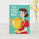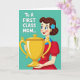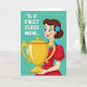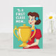 This design shows a smiling, stylized woman centered against a calm teal background, her bright blue eyes and rosy cheeks giving her a friendly, affectionate look ❤️. She wears a red dress with puffed sleeves and a neat blue collar, and a small blue flower sits in her brown hair beside tiny yellow stud earrings. In front of her, she holds a large golden trophy with shiny highlights, and the way she cradles it close suggests admiration like a warm hug between close friends. The figure sits slightly off-center so the trophy feels extra important, filling much of the right side of the scene. In the upper left, crisp white lettering delivers the message, standing out clearly against the teal and balancing the trophy’s glow. The overall palette stays rich and cheerful, with smooth graphic lines that keep everything easy to read and look at 🌼. The trophy’s wide cup, curved handles, and bright gold sheen are the most eye-catching details on the card front.