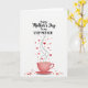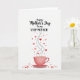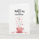 This card features a bright white background that keeps the focus on a sweet Mother’s Day message near the top. The text sits in the upper third, mixing flowing cursive-style lettering with uppercase words, and it’s colored in soft pink and deeper red tones. Tiny heart icons in rosy pink dot around the words, adding a gentle, affectionate touch ❤️. In the lower half, a blush-pink teacup rests on a matching saucer, like a quiet moment shared with someone you adore. From the cup, dashed lines curl upward as steam, and the rising trail turns into floating hearts and five-point stars in shades from pale pink to rich red. Near the bottom edge, small scattered hearts, stars, and a few simple flower shapes 🌼 repeat the same pink-and-crimson palette across the white space. The cup and saucer are centered low on the page, with the upward swirl of steam and shapes drifting toward the message above.
