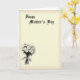 This greeting card features a creamy, aged parchment background that feels like a treasured letter kept close ❤️. Faded, ornate corner details lightly frame the design, adding a gentle antique touch without overpowering the center. Near the upper left, the words “Happy Mother’s Day” sit prominently in dark black lettering, standing out sharply against the soft paper tone. The text is angled slightly to the left side, giving the layout a quiet, intimate balance, like a note written with care. In the lower left, a monochrome bouquet of daisy-like flowers gathers together as if offered with affection, their clustered blooms suggesting a close, caring bond. Each blossom shows pale petals around a deeper center, and the group is tied with a simple ribbon that drapes downward in a relaxed curve 🌼. The black-and-white floral shading adds texture and depth, like an old photograph preserved in a keepsake box. The bouquet rests low on the left side with the ribbon tails extending toward the bottom edge, while the ornate corners remain softly faded in the background.