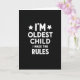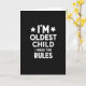 This design shows a stark black background with bright white, thick sans-serif lettering that feels confident and a little teasing, like a sibling giving a knowing grin ❤️. The phrase “I’M OLDEST CHILD I MAKE THE RULES” sits centered and dominates the layout in three stacked lines. The top line reads “I’M,” and it’s framed on both sides by two small, symmetrical five-point stars in white, adding a hint of friendly swagger. The middle line, “OLDEST CHILD,” stretches widest across the center, with evenly spaced letters that look steady and in charge. The bottom line, “RULES,” lands like a firm finale, visually echoing the idea of someone setting boundaries while still keeping it light. The high contrast makes the message feel direct and close-up, like a playful face-off that ends in a smirk 🌼. All text is centered, with the stars aligned to the left and right of “I’M,” and every element is rendered in solid white against the deep black field.