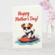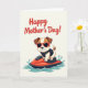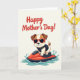 This card features a cheerful digital illustration on a soft cream background, with a friendly, celebratory mood that feels like a warm hug ❤️. Across the upper area, the text “Happy Mother’s Day!” sits prominently in deep red lettering, centered and easy to spot. Below the message, a stylized dog with creamy white and warm brown fur flashes a big grin, giving off an affectionate, upbeat energy. The dog wears red-framed sunglasses that add a fun, confident look, as if it’s sharing a lighthearted moment with someone it adores. A dark protective vest wraps around its body, helping the action scene feel adventurous without getting harsh. The pup rides a bright red watercraft, leaning forward as if racing along to deliver a sweet greeting 🌼. Cool teal water splashes up in curved shapes around the craft, framing the motion against the pale background.