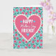 This card features a large deep fuchsia heart centered on the front, edged with a scalloped white border that looks like a delicate cut-paper trim. Inside the heart, a cheerful Mother’s Day message sits in crisp white lettering, mixing thicker simple letters with a thinner flowing style for contrast. A couple of small turquoise hearts tuck into the wording like affectionate pauses, adding a gentle romantic touch ❤️. Behind the main heart, the background is light blue and covered in a repeating pattern of five-petal pink flowers that feel like friendly little nods to spring 🌼. Each blossom has a slightly darker center, with simple green stems and leaves linking the pattern across the card. The text stays contained within the heart shape, centered and easy to spot against the rich pink. The overall palette stays focused on pink, light blue, white, and green, with the turquoise accents standing out in the message and around the heart. The light blue field is dotted evenly with the pink flowers, creating a tidy all-over pattern behind the central heart.