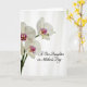 Designed with a graceful diagonal arrangement of white flowers, this card features blooms rising from the lower left toward the upper right like a gentle bouquet being offered with affection ❤️. Each blossom has soft, translucent petals with faint vein lines, and a striking center that flares from fuchsia into deep purple, drawing the eye like a tender gaze between close friends. A few flowers fade slightly out of focus behind the front cluster, adding depth while keeping the mood quiet and intimate. The background stays a luminous, diffused white with a light suggestion of sheer fabric, so the florals feel like they’re floating in soft morning light 🌼. In the open negative space, a dark, flowing calligraphic message sits neatly, balanced so it doesn’t crowd the blooms. The lettering appears near the middle-right area, standing out clearly against the pale backdrop and echoing the elegant curves of the petals. Subtle highlights trace the petal edges while the fuchsia-and-purple centers glow gently, making the diagonal line of flowers feel naturally guided. The deepest purple tones gather at the heart of each flower, surrounded by crisp white petals and a misty white background.