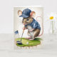 Adorable mouse in blue hat and jacket ready for a fun day of golf.