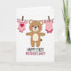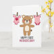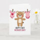 This greeting card shows a friendly, human-like animal figure in warm brown with lighter accents on its muzzle and belly, standing front and center with rosy cheeks and a wide smile that feels like a gentle hug. On either side, two tiny baby outfits in soft pink hang from a thin clothesline, clipped with small natural-toned pegs, as if someone just carefully put them up together. One outfit features a bright red heart ❤️, adding a quiet romantic touch and a sense of close family affection. The background is plain white, giving the scene lots of breathing room and making the soft colors stand out without feeling busy. Below the illustration, a short message about Mother’s Day is placed near the bottom in a clear, friendly style, printed in a darker color that’s easy to read. The layout keeps the character and clothesline in the upper area while the text sits neatly underneath, creating a simple top-to-bottom flow. The little garments hang evenly with gentle curves in the line, and a tiny red trim detail frames the pink fabric like a soft border 🌼.