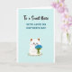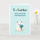This card shows a soft pastel scene with a rounded white animal-like character sitting in the lower half, its small black eyes and rosy cheeks giving it a shy, affectionate look ❤️. Its ears have gentle brown tips, and it hugs a bouquet of tiny deep-blue flowers close to its chest, like it’s offering them to someone special. The background is a light, airy blue with a few small white star shapes scattered around, adding a calm, dreamy feel. A small green patch under the character grounds the scene, textured with a few darker specks like little bits of grass. At the top, the phrase “To a Sweet Niece” appears in a flowing style in a darker shade, centered above the illustration. Just below that, “WITH LOVE ON MOTHER’S DAY” is set in simple uppercase lettering, also centered, standing out clearly against the pale sky-blue. The overall layout leaves plenty of open space around the character, so the text and bouquet feel like a gentle focus 🌼. The blue flowers are clustered tightly with small rounded petals, contrasting strongly against the character’s bright white body.