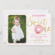 Celebrate your little girl's big milestone with this fun and colorful “Sweet One” donut-themed birthday design. Featuring a pink frosted donut, rainbow sprinkles, and space for a personal photo, this invite is perfect for a 1st birthday with a sprinkle, sweet shop, or bakery party theme. Easily customize with your details for a unique and memorable celebration.