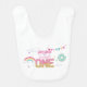 Adorable ice cream and donuts design for baby girl's 1st birthday baby bib with "Sweet One" design on front.
