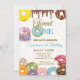 Celebrate your little one's first birthday with this adorable donut-themed invitation, featuring colorful sprinkles and sweet donut graphics.
