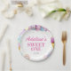 Serve your party treats in style with these "Sweet One" paper plates! Featuring a whimsical donut, candy and sprinkle design in soft pastel colors, these plates are perfect for your baby's first birthday celebration. Durable and decorative, they match your sweet-themed party stationery perfectly. Easy to customize with your little one's name.