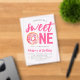 Invite guests to your little one's 1st birthday party with these sweet donut-themed birthday invitations! The cute first birthday party invites feature the phrase "Sweet One" in bright pink lettering, with the "o" replaced by a pink watercolor donut adorned with multi-colored sprinkles. The design is set against a frosted or transparent acrylic background. Personalize the sweet donut birthday invites with your child's name and party details, making them the perfect treat for your little one's celebration!